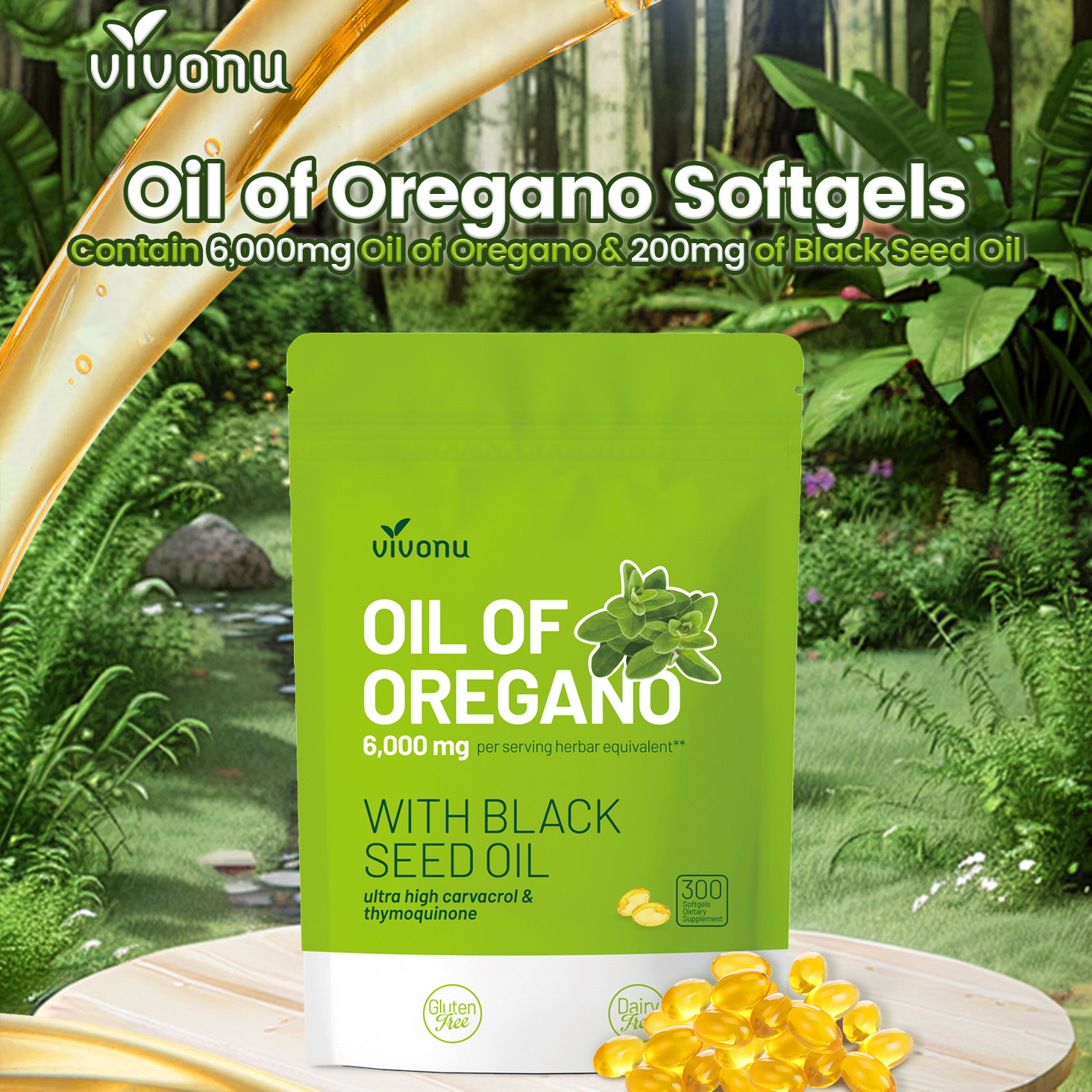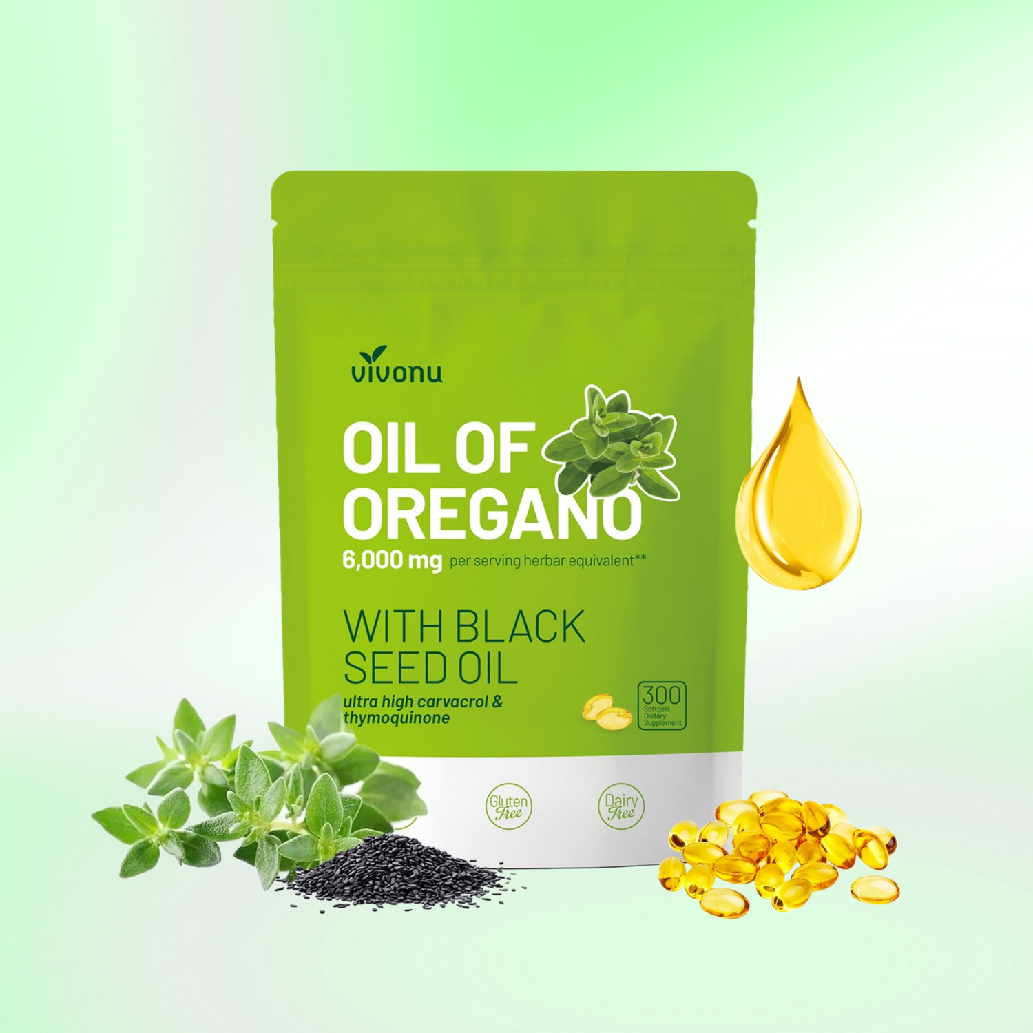 Each serving delivers 6,000 mg of oregano oil combined with 200 mg of black seed oil in easily absorbable softgels. This powerful 2-in-1 botanical blend provides concentrated antioxidant and wellness support in a convenient daily formula.