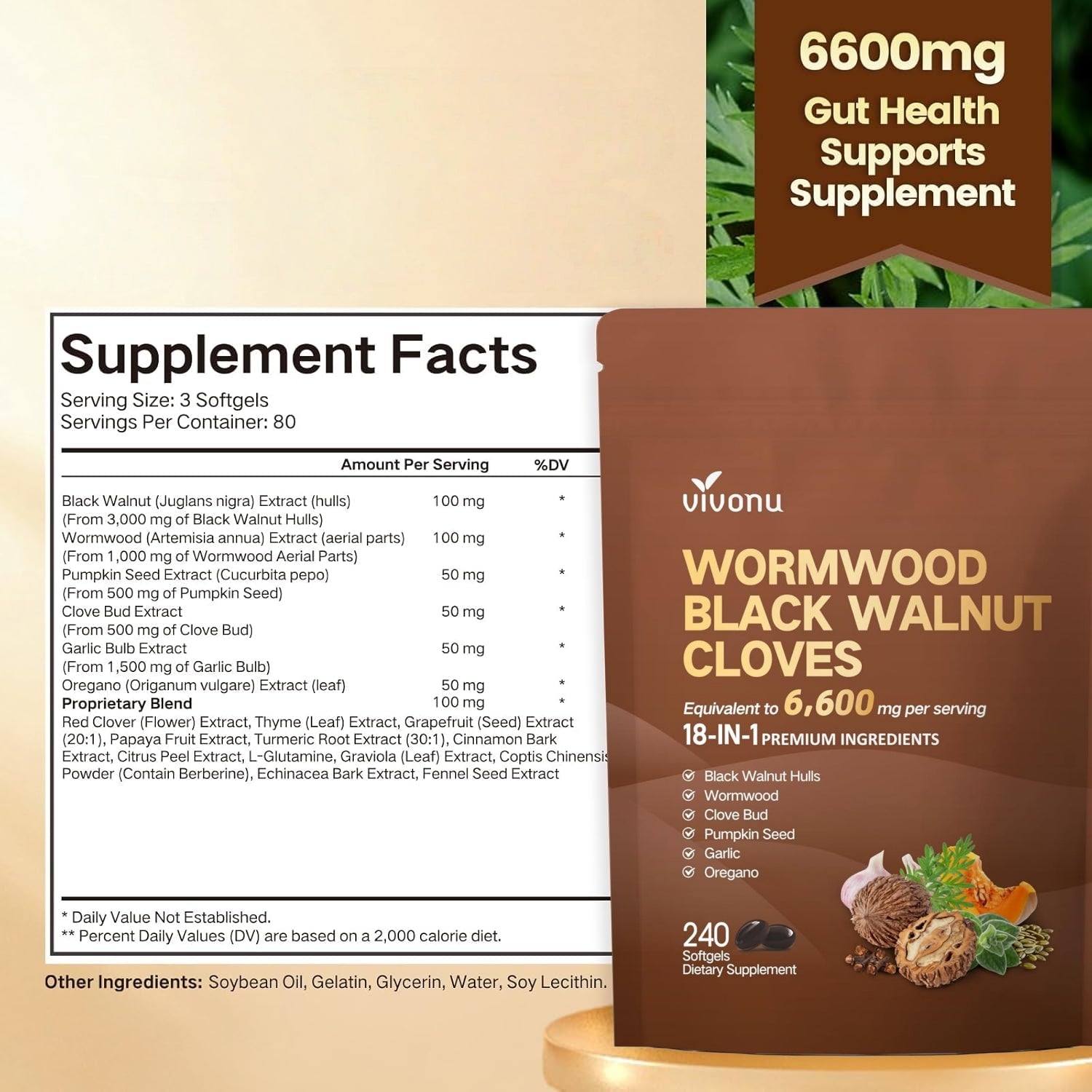 Take 3 Vivonu Wormwood, Black Walnut & Clove softgels daily.