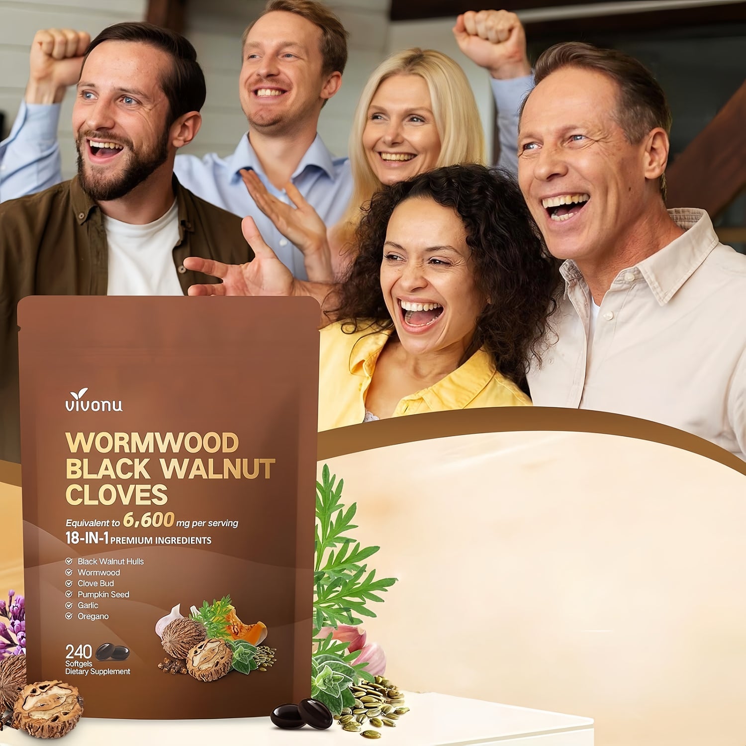 This 18‑in‑1 herbal formula contains a blend of natural plant extracts, including wormwood, black walnut hulls, garlic, pumpkin seeds, clove buds, oregano, and more, delivering a total of 6,600 mg per serving for comprehensive plant-based support.